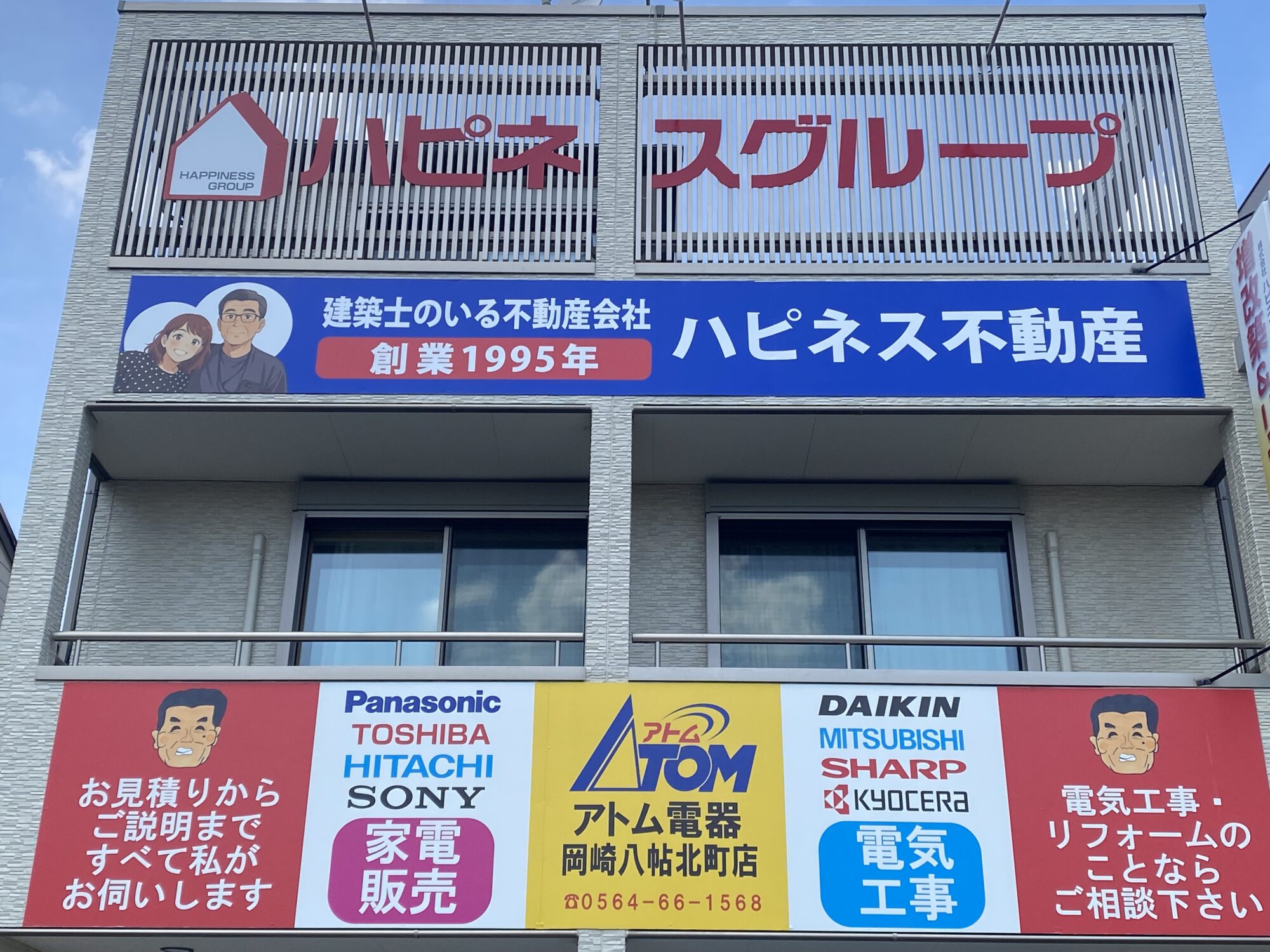このたび、岡崎市八帖北町にある本社の看板をリニューアルいたしました。新しい看板は、代表の夏目が好きなカラーである青を基調としたデザインに仕上げました。お客様に「安心」「信頼」「誠実さ」を感じていただけるよう、細部までこだわって制作しています。30周年を迎える節目にふさわしく、社員一同、気持ちを新たに地域の皆さまに貢献してまいります。お近くにお越しの際は、ぜひ新しい看板をご覧ください。